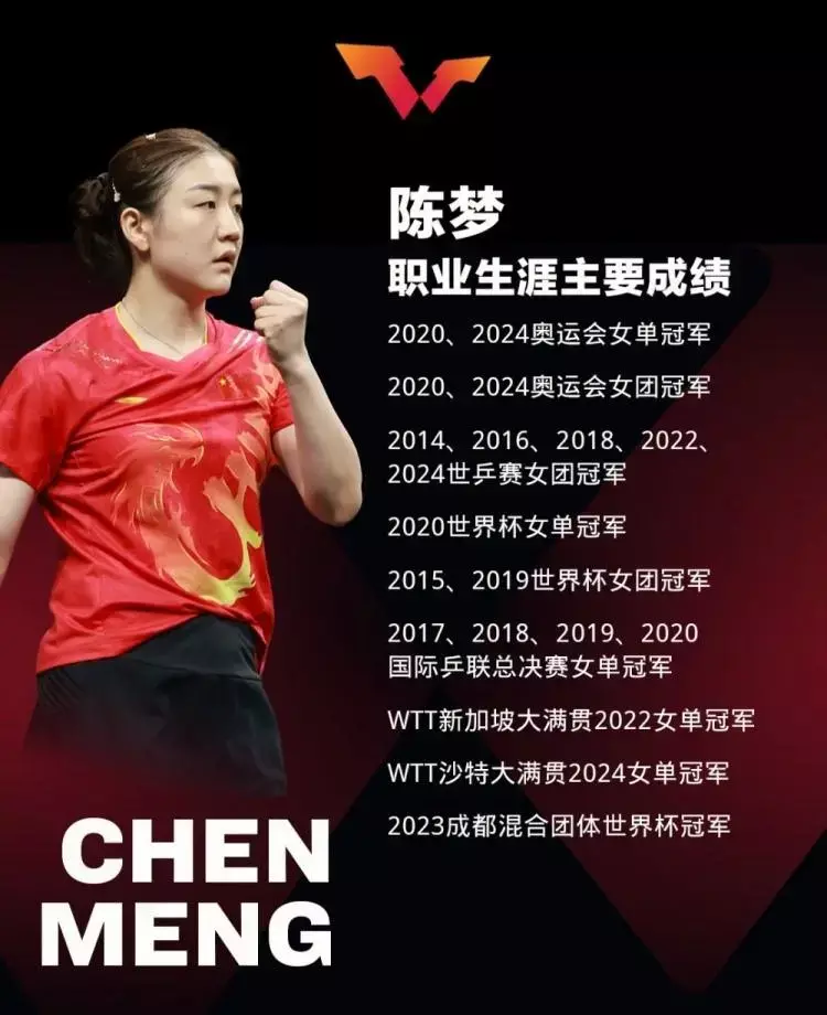 WTT天下乒联官方社媒发布了陈梦做事生存主要收货追思,以为19枚金牌,4枚奥运会金牌。